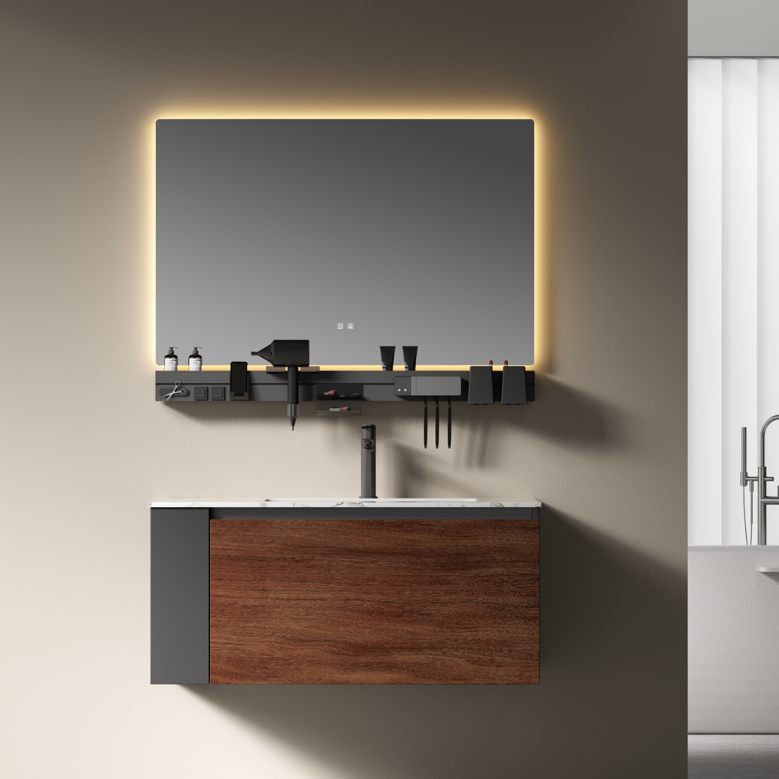 Mirror/cabinet [SL-1001-MC]:Mirror Cabinet + Multi-Functional Shelf